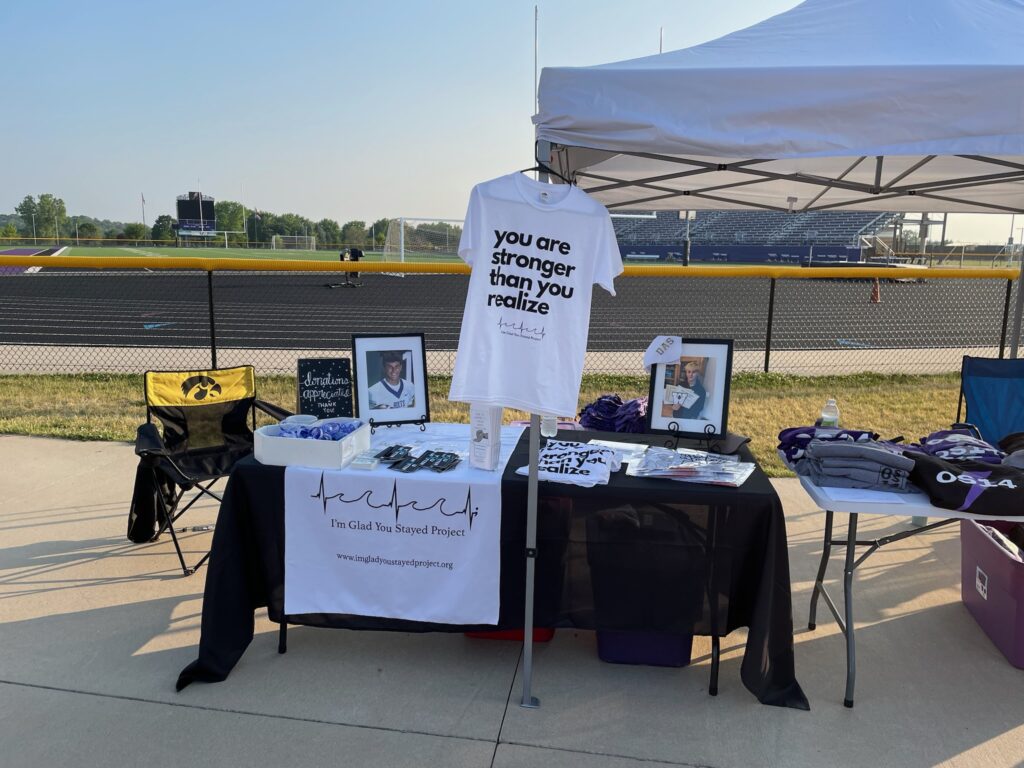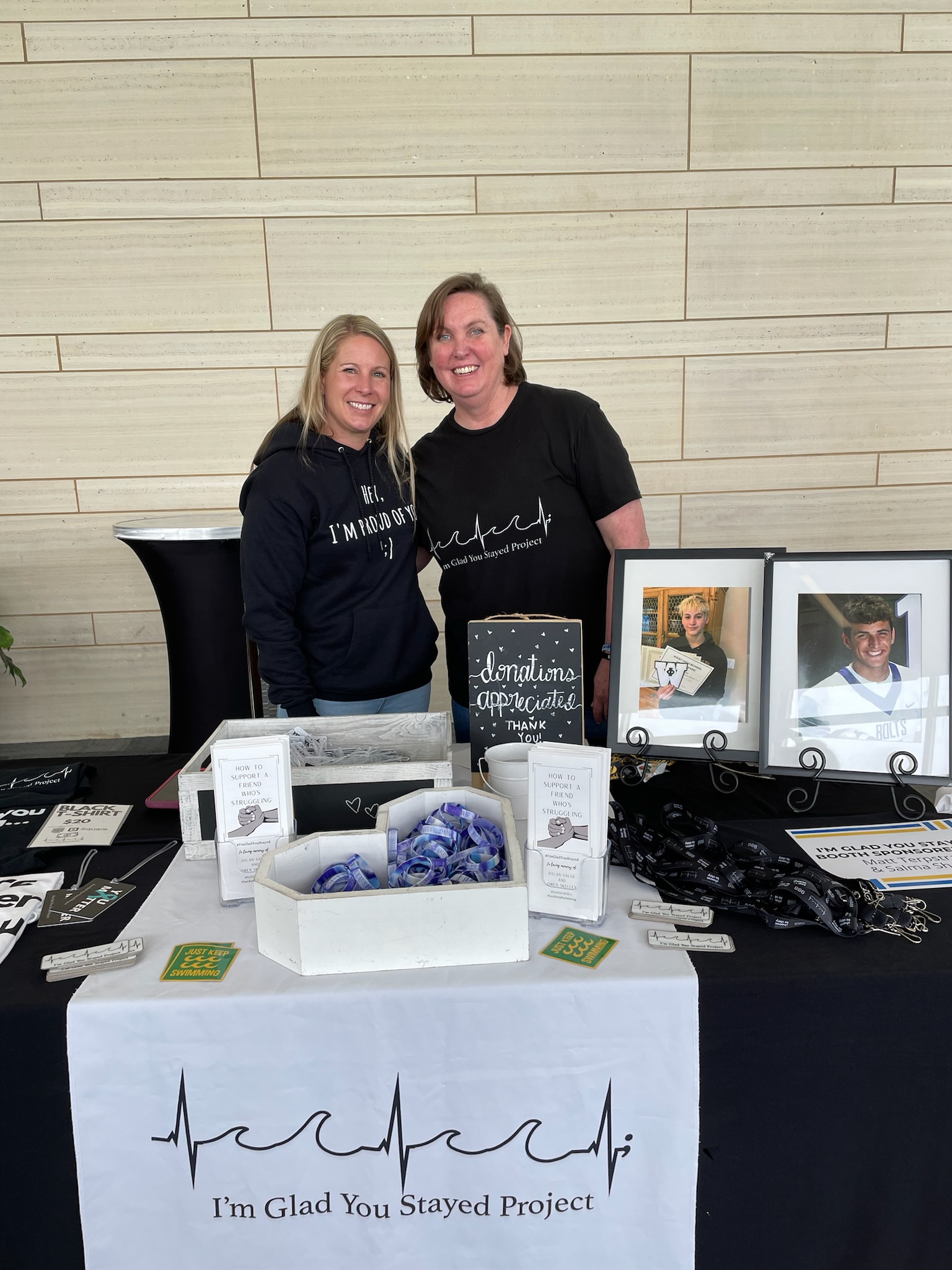 We love to set up our resource tables at schools (especially during lunches), mental health fairs and community events, athletic events, and organization meetings! We never charge for our resources. Our tables include “Just Keep Swimming/ 988” bracelets, our IGYSP pamphlets about how to help a friend who is struggling, bag tags, and other 988 “swag” such as lanyards, buttons, and stickers.